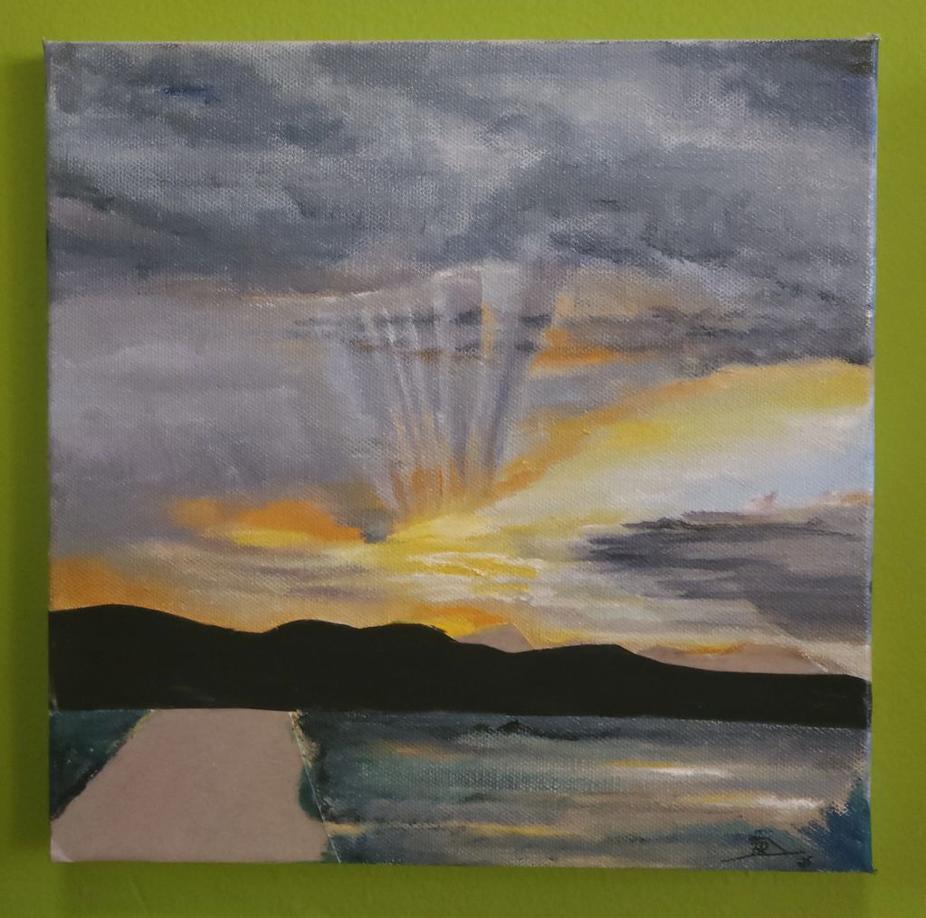 10 x 10 Oil and paper on canvas